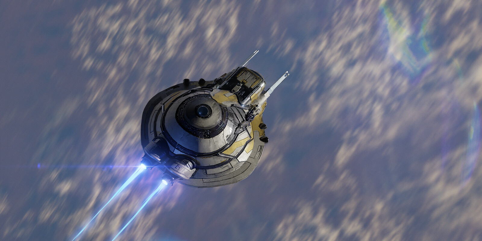 Several Star Wars inspired keyframes of Hecklefish's ship in action